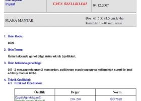 Ürünlerimiz alev yürütmez ve yanmazlık sertifikalarına sahip avrupa normlarında alev almaz / yanmazlık Firex ; yanmazlıkta BS476:class 0 ve Unı 9175:2008 M1 belgelerine sahiptir. Ölü hücreli olması nedeni ile mantar ve bakteri üretmemekte anribakteriyeldir.