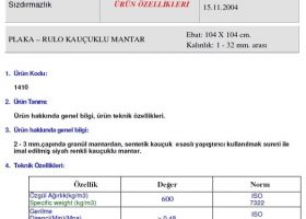 Emn Rubber Cork Yanmazlık : Parke Altı mantar şilte rulo Yanmazlık özelliği yoktur.