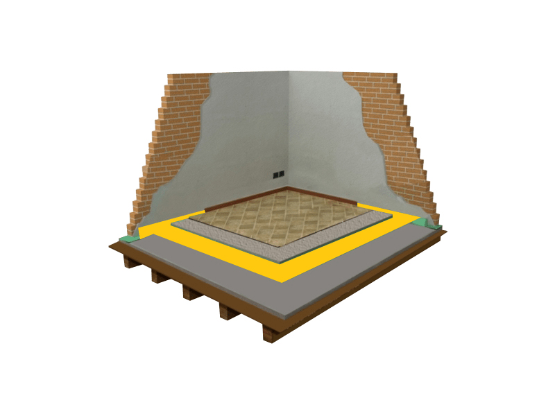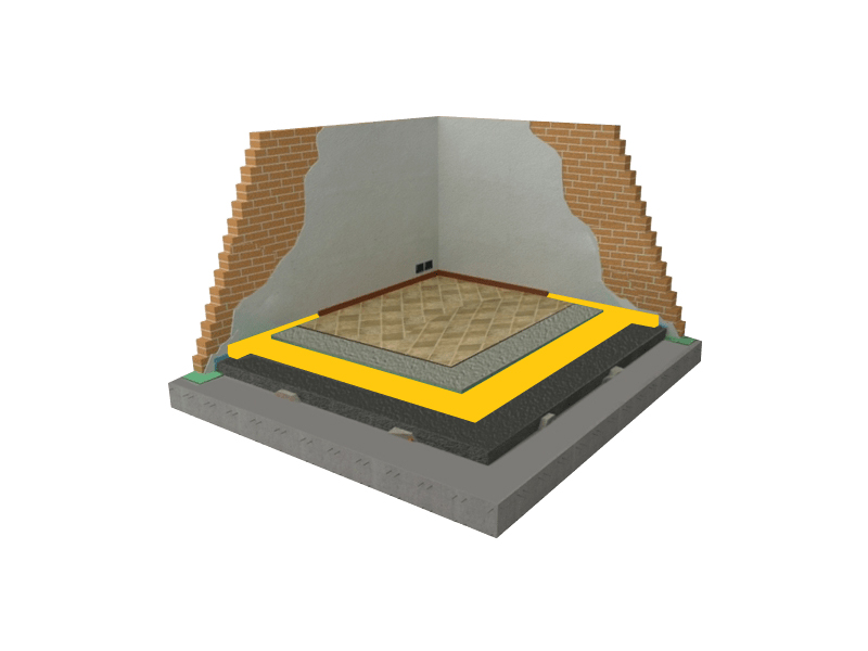 Zemin Ses Yalıtımı : Ev, iş yeri ve mekanların ortak duvar ses yalıtımını ve izolasyonunu sağlamak amaçlı örnek kesitlerde kullanılmakta olan ürünleri kullanarak 20 ila 70 dB arasında izolasyon ve yalıtım sağlamaktadır.